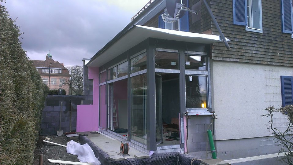 Ausführung: AluminiumkonstruktionBesonderheiten: Mit Durchbruch zum Wohnraum, Vergrösserung des Wohn-/EssbereichsBaujahr: 2014