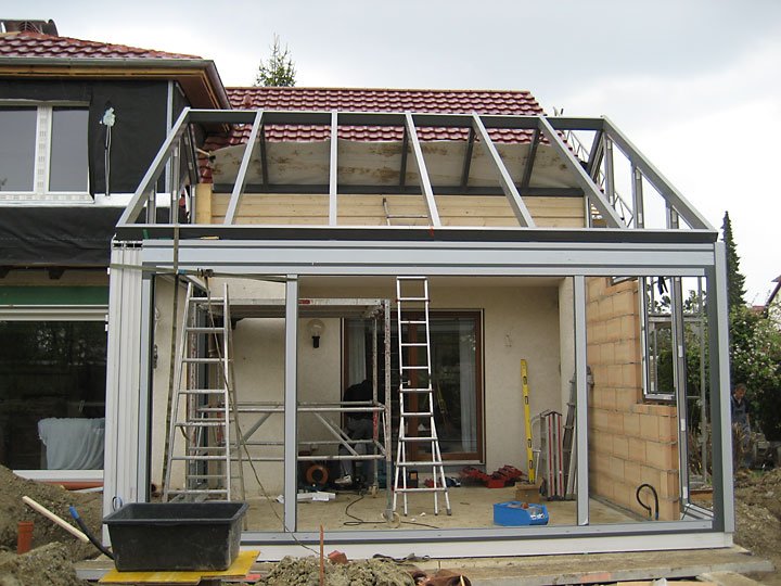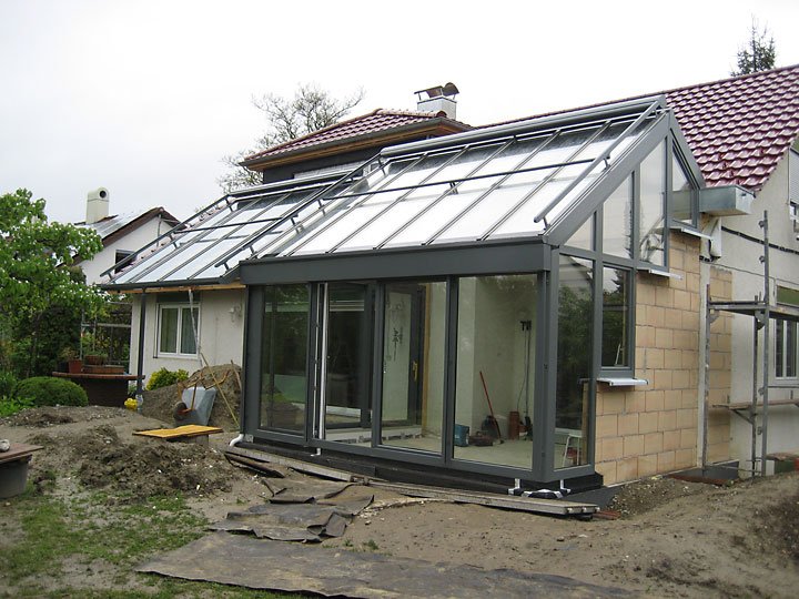 Ausführung: Aluminium-KunststoffkonstruktionBesonderheiten: Wohnwintergarten mit TerrassendachBaujahr: 2010