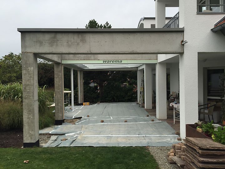 Besonderheiten: Erweiterung um Terrassendach mit Zip-Markisen senkrecht im Stil des HausesBaujahr: 2014