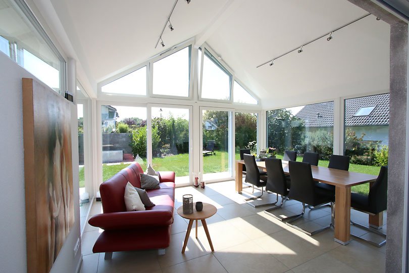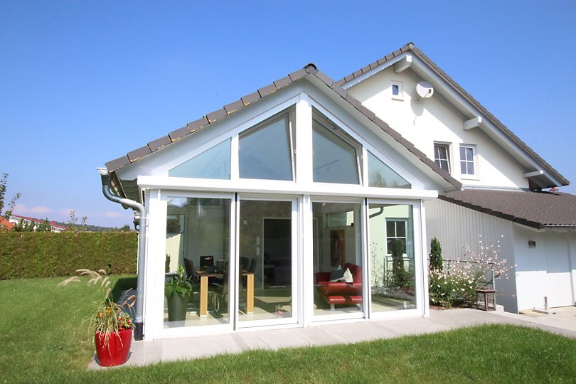 Besonderheiten: Erweiterung mit Satteldach, Wintergarten mit Ziegeldach