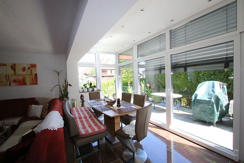 Ausführung: AluminiumkonstruktionBesonderheiten: Mit Durchbruch zum Wohnraum, Vergrösserung des Wohn-/EssbereichsBaujahr: 2014