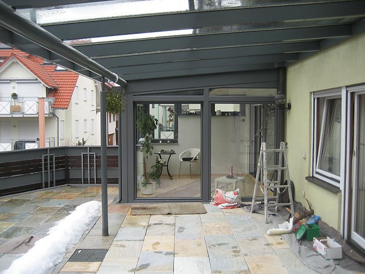 Besonderheiten: Wintergarten und Terrassendach mit Stauraum für Polsterung