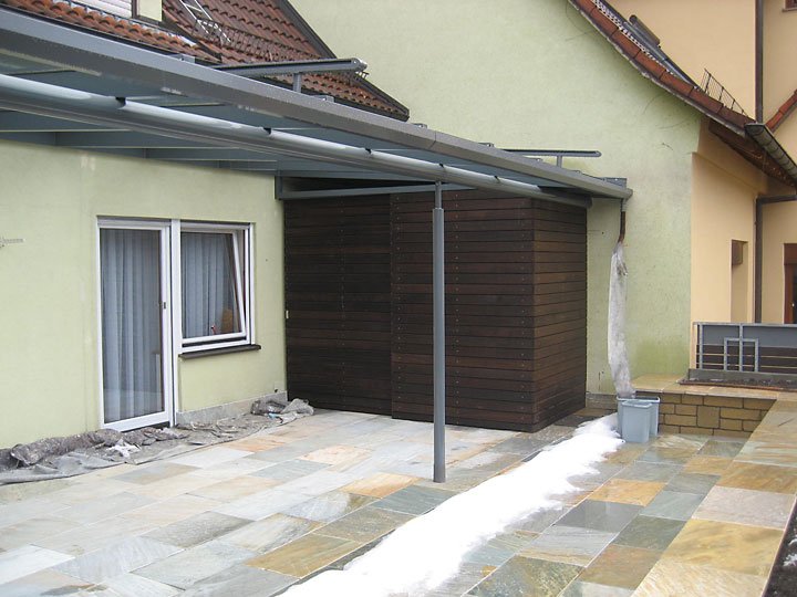 Ausführung: Alu-KunststoffkonstruktionBesonderheiten: Wintergarten und Terrassendach mit Stauraum für PolsterungBaujahr: 2009