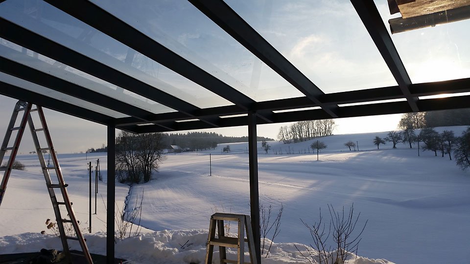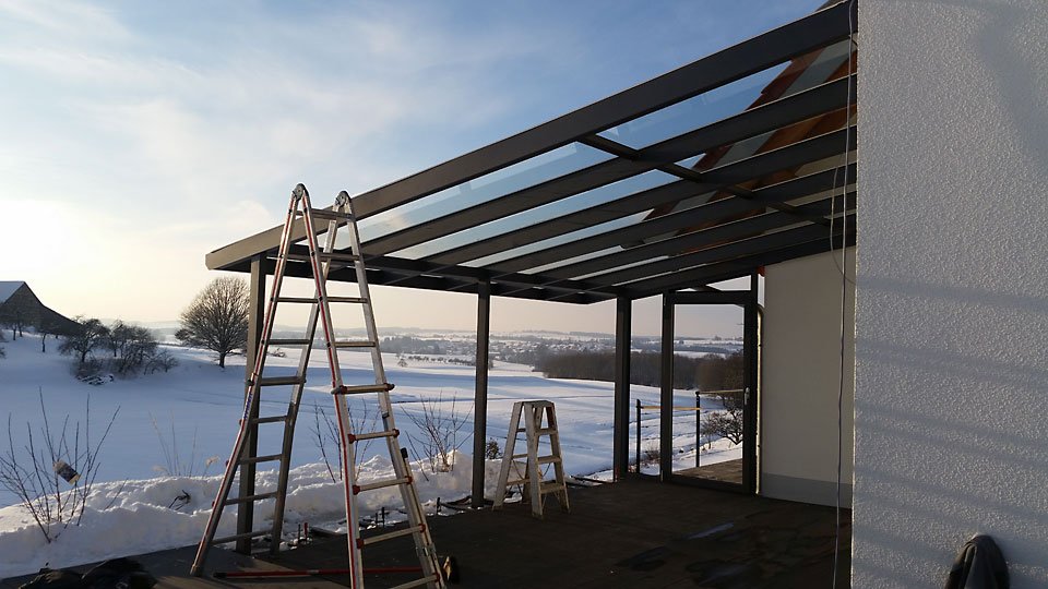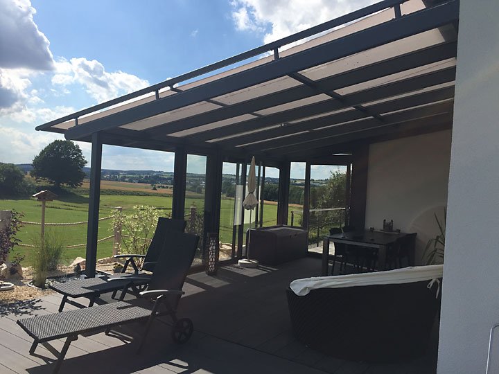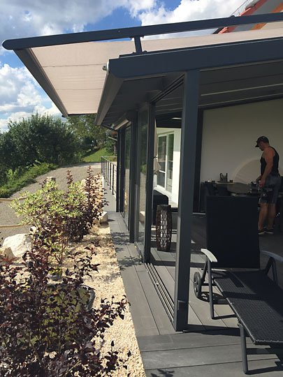Besonderheiten: Überdachung Sitzplatz mit Markise uns senkrechter Jalousie