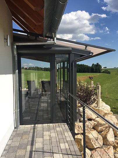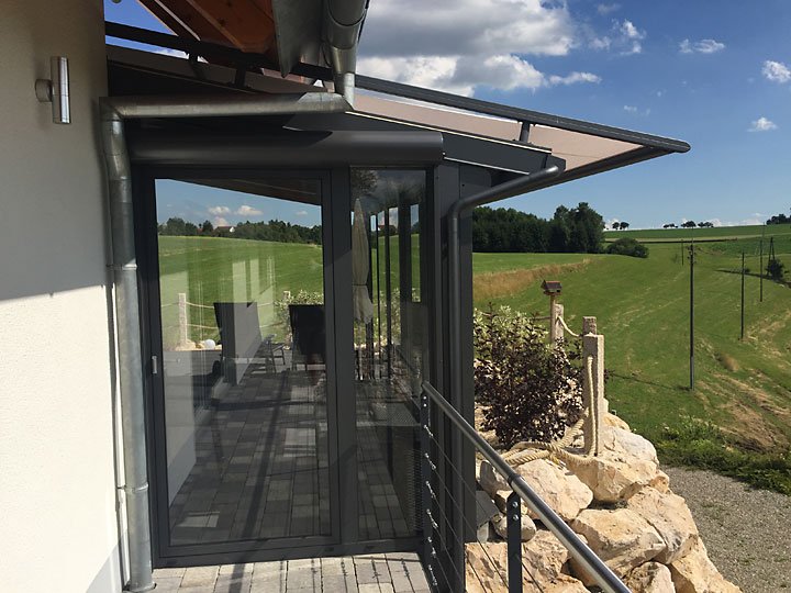 Besonderheiten: Überdachung Sitzplatz mit Markise uns senkrechter Jalousie