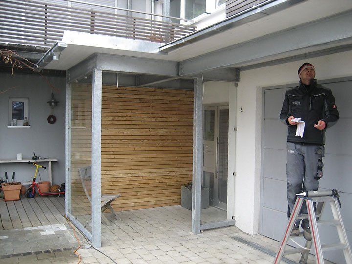 Ausführung: Stahl/HolzBesonderheiten: Dach über Türe, Tor und Zwischenraum. Funktional und schönBaujahr: 2011